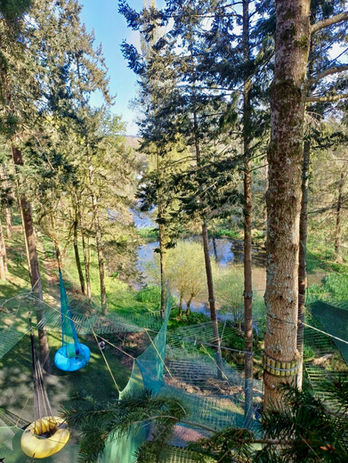 Venez sauter dans des filets suspendus dans les arbres.  Prenez de la hauteur dans le parc du Quinquis entre verdure et animaux.